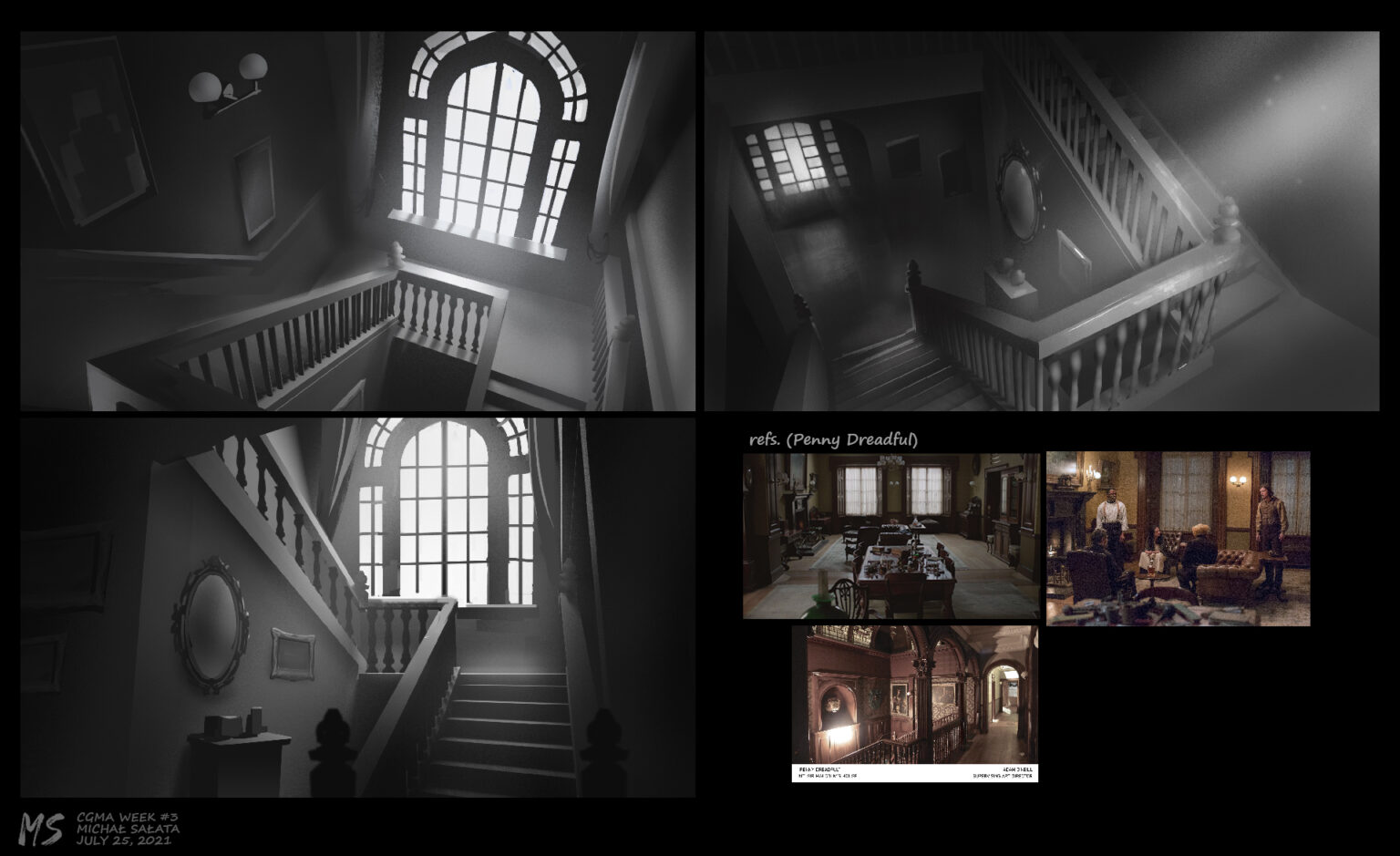 Victorian house CGMA#3 Week#3 assignment at CGMA: ,,3D for 2D Artists”. A lot of helpful tips and feedback from Sergio Castaneda. Ships painting by Donald Demers.